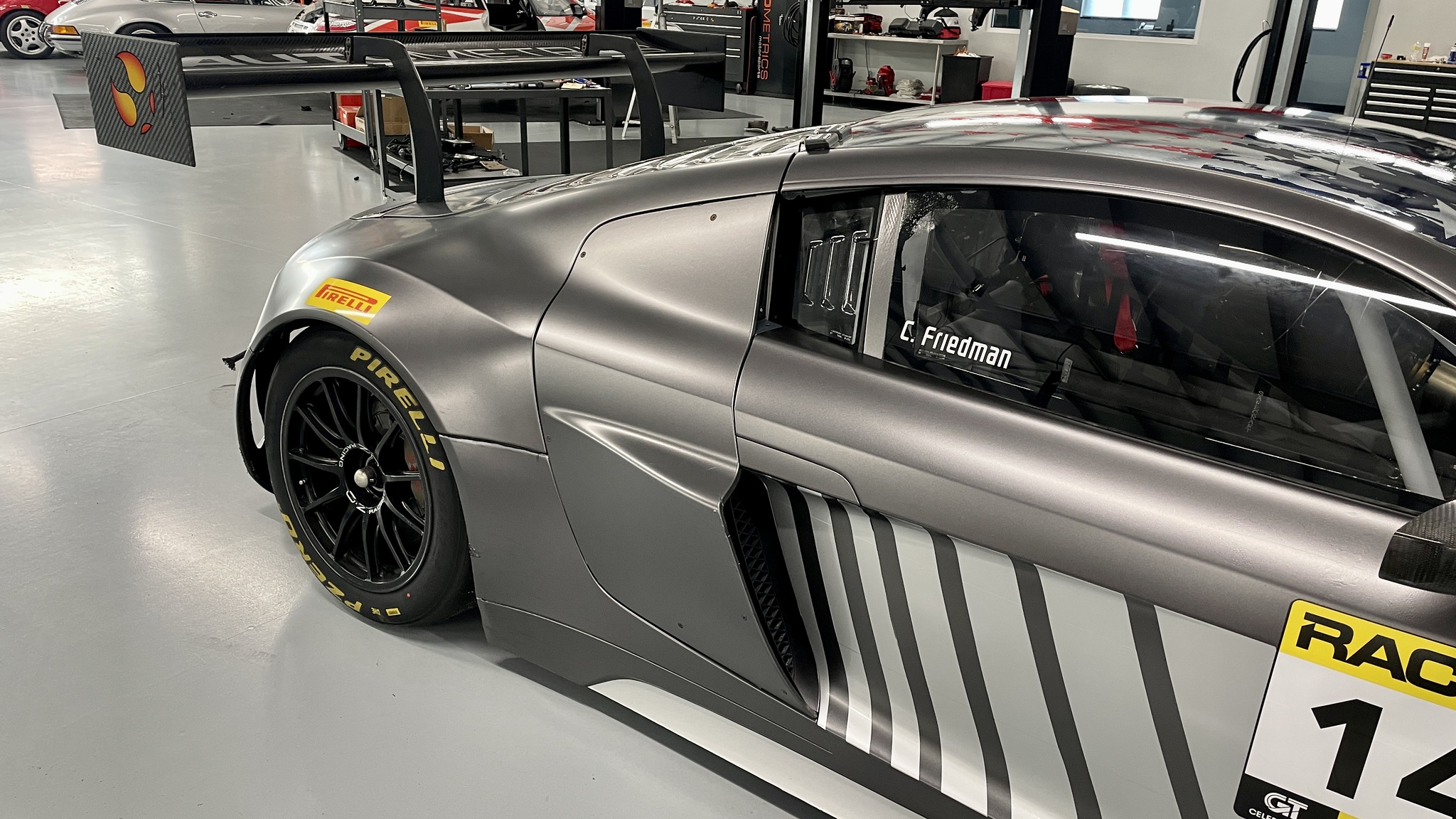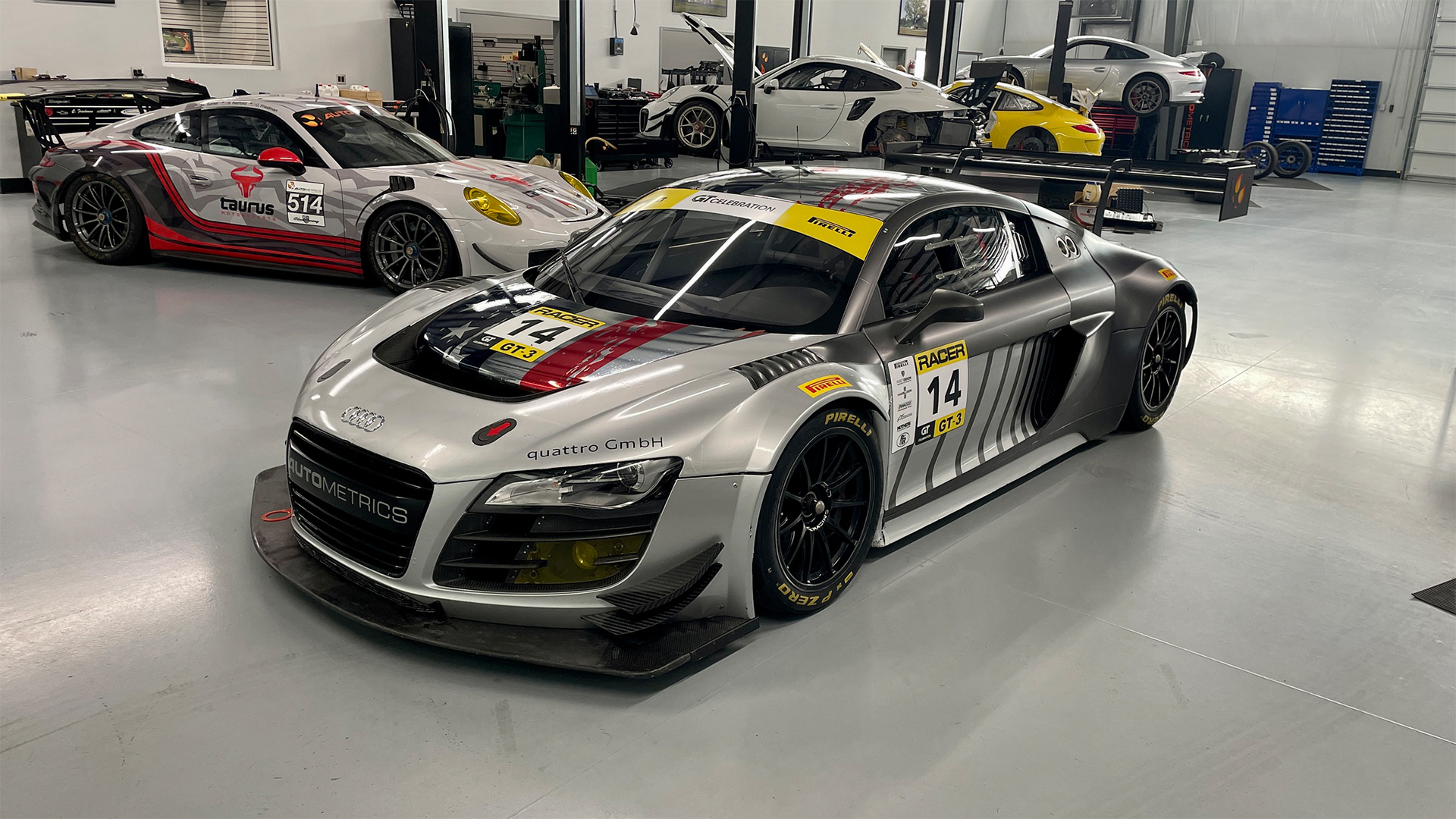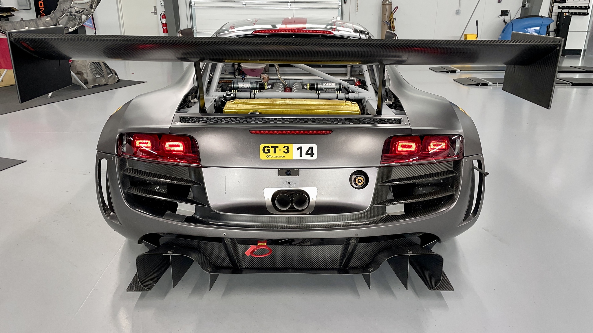This Audi GT3 R8 LMS Ultra is the very last 2014 GT3 chassis sold by Audi Sport. After starting life as a Grand Am spec. R8 LMS GT3 the chassis was replaced by a team in California. Shortly after, it was purchased by Autometrics Motorsports in Summerville SC, where they rebuilt the transmission, it has only accumulated approximately 4,000 km since.