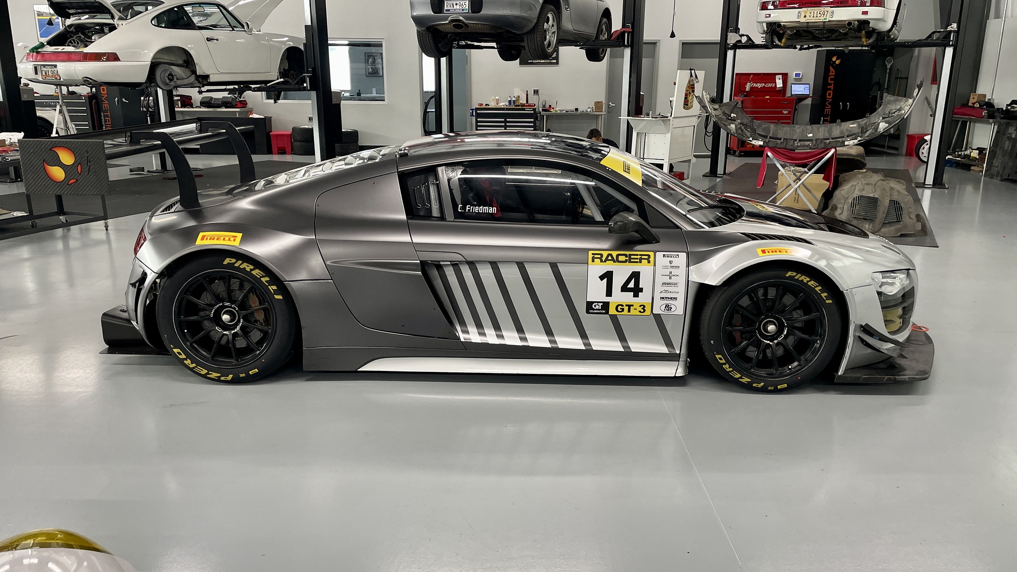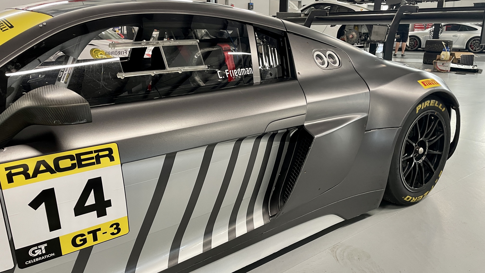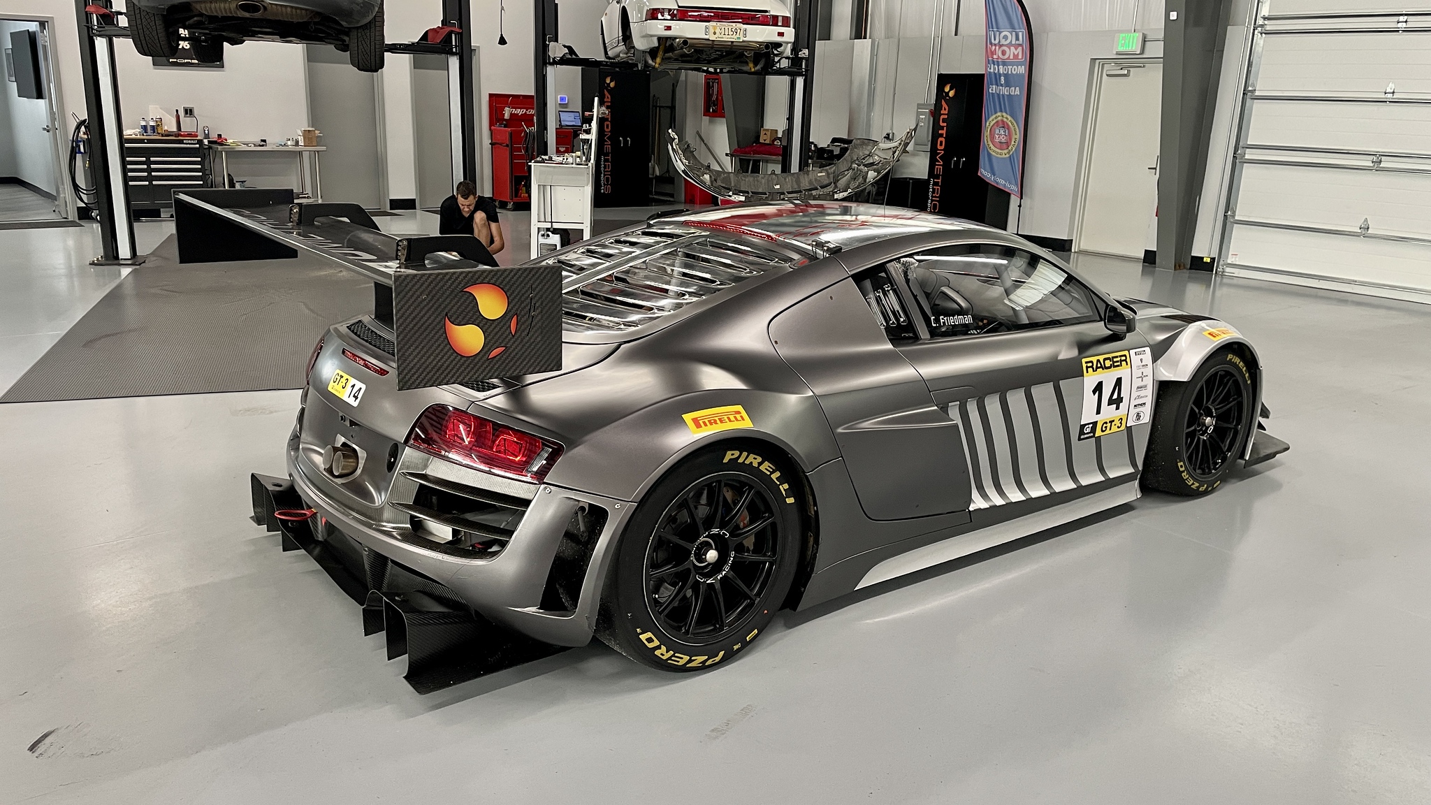 This Audi GT3 R8 LMS Ultra is the very last 2014 GT3 chassis sold by Audi Sport. After starting life as a Grand Am spec. R8 LMS GT3 the chassis was replaced by a team in California. Shortly after, it was purchased by Autometrics Motorsports in Summerville SC, where they rebuilt the transmission, it has only accumulated approximately 4,000 km since.