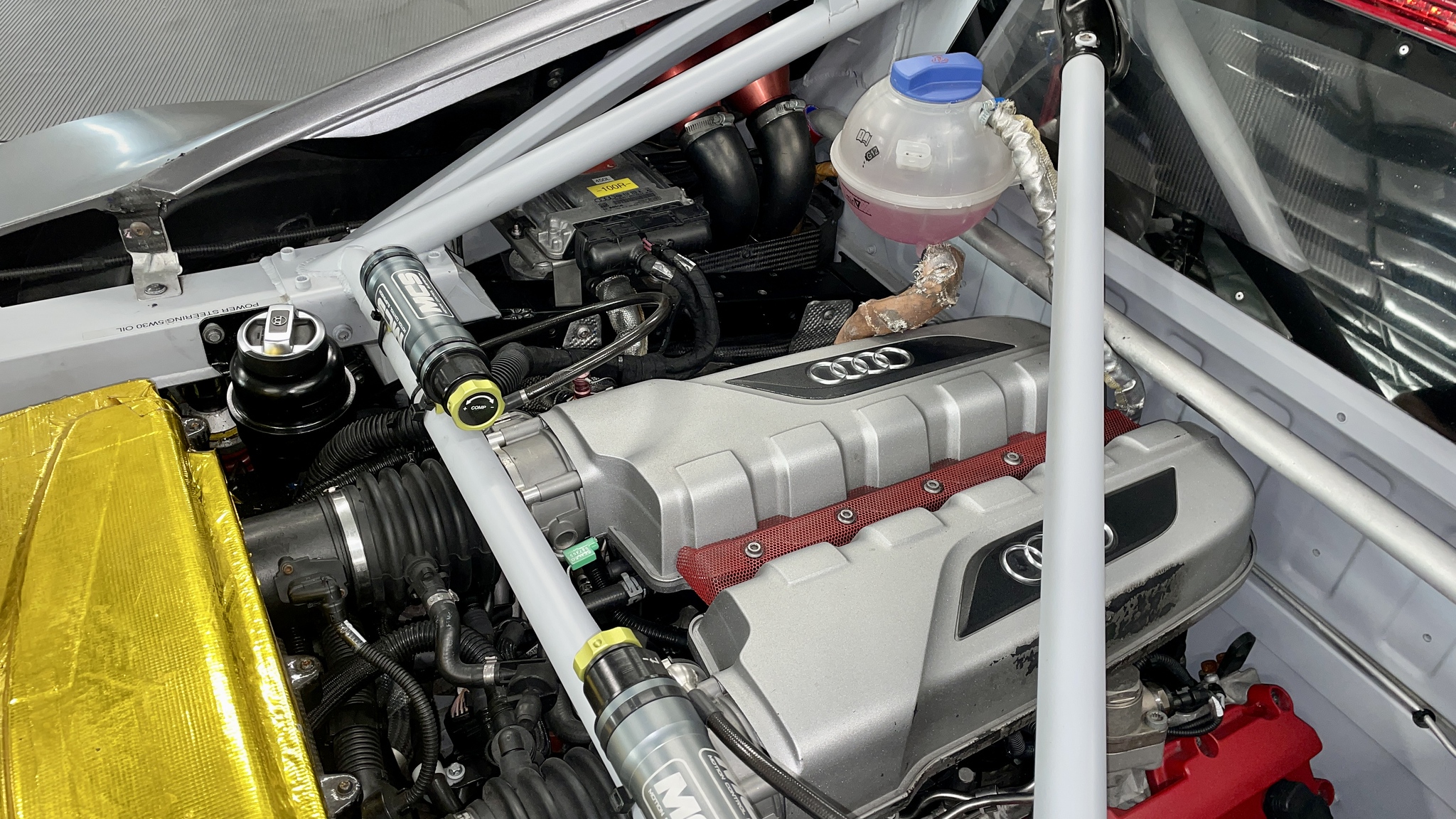 The R8 LMS Ultra also received several chassis improvements, such as enhanced front brake cooling, uniball joints in the transverse control arms, and Bilstein gas dampers.
